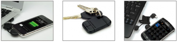 - Attaches to a keychain so users always have a convenient way to charge and sync their phone or MP3 player