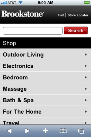 Brookstone, the specialty product retailer in malls across America, recently rolled out an updated mobile website complete with video to augment product descriptions. The site was developed by Usablenet, the same folks that recently worked on the Marks and Spencer mobile site. The site follows the footsteps of the Marks and Spencer site, and offers another good point of reference for successful mobile design, in case you needed “inspiration” for your own mobile design efforts.