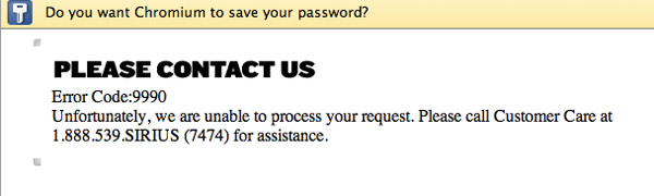 I’d just like to point out that it’s 12:15pm ET on June 25, 2010, and XM Radio Online has once again crashed and burned. That’s with the iPhone App, the plain on’ Web site, and my third-party application that I use because the plain ol’ Web site is terrible on a Mac. Good service you’ve got here, Sirius XM. Third time this week it’s happened to me (but I only listen a few hours per day, so who knows how often the stream is really down). And to be clear this only seems to affect XM Radio Online users, not Sirius folks. At what point can you reasonably say, “Well, your honor, I paid for a service that patently didn’t work. I’d just like my money back is all”?
