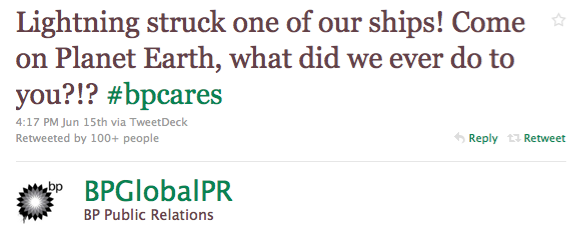 Some people think it is real. BP initially wanted to shut down the sardonic account, but Twitter’s policy allows for parody accounts, so long as they don’t mislead or deceive. BP demanded the impostor rewrite his bio, and he did, but not without commentary: “We are not associated with Beyond Petroleum, the company that has been destroying the Gulf of Mexico for 52 days.” It’s since reverted to the original “This page exists to get BP’s message and mission statement out into the twitterverse!”