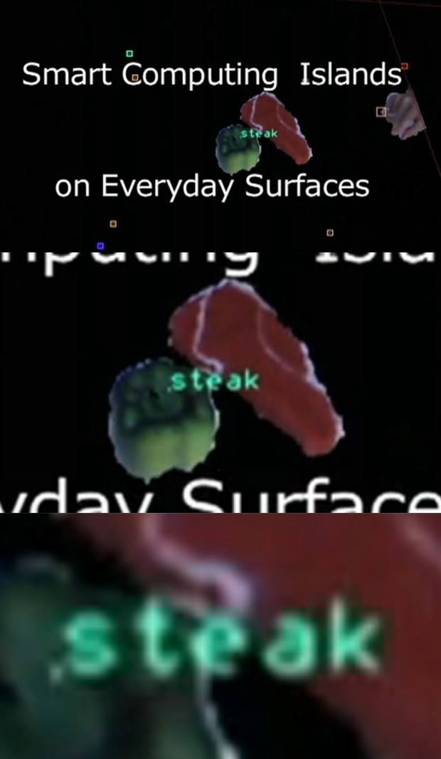 This is great. If it actually works, it’s like the Surfaceless Surface crossed with… I don’t know, Cooking Mama. Intel Labs’ Tabletop Computing is about natural interactions with real objects, on regular surfaces. Of course, I doubt your kitchen is naturally dark enough to support a projected interface like this one, but they’ll figure something out.