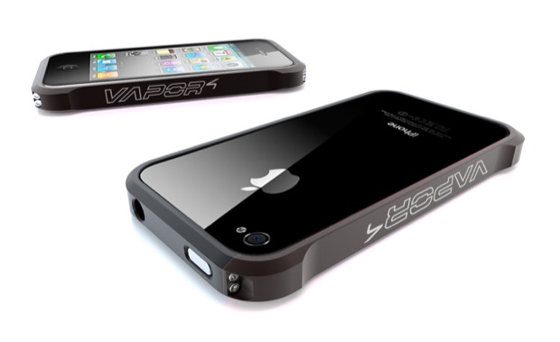 The Vapor snugly and securely shields the iPhone 4 with two aluminum frame components, available in a variety of color combinations and selections. An ergonomic shape provides a sure grip while specially design cutouts provide access to the volume and silence controls, and an integrated, machined “on/off” button has been added to complete the clean lines of the Vapor. A carbon-fiber back plate can be added for enhanced scratch protection and a bold appearance.