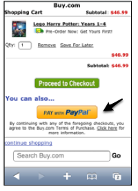 Mobile Express Checkout is the mobile version of PayPal’s Express Checkout service, which is a one-stop payment option streamlines the checkout process for consumers. A buyer will not have to reenter shipping, billing, or payment information for a PayPal payment, expediting the checkout process. All they need to do is enter their PayPal account login. It’s similar in theory to Amazon’s one click ordering option.