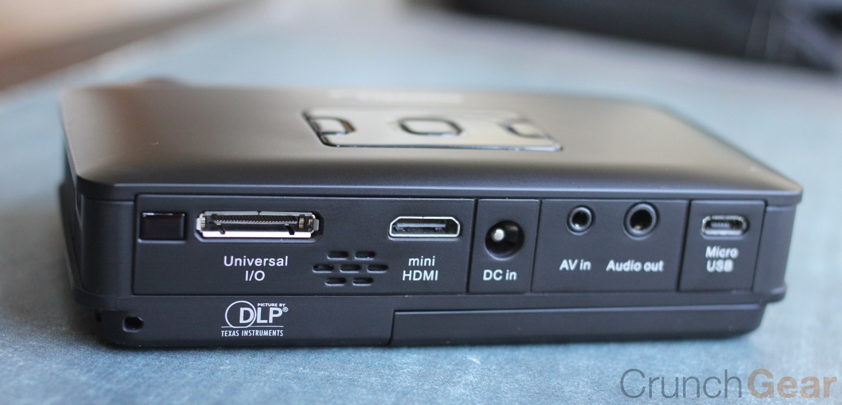 The PK201 is, let us just admit right off, ugly. I appreciate that it is compact, but the styling leaves much to be desired. You can’t tell which end is the front and there are inputs willy-nilly. If you need to look cool while using your pocket projector, this isn’t the device for you.