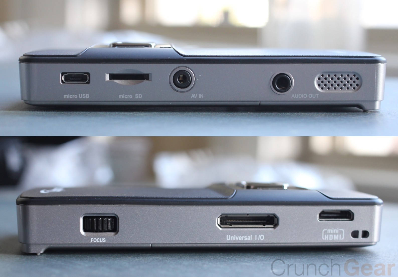 Comparatively, the PK301 is understated and classic. It looks like… a tiny projector. All the inputs are neatly laid out on the back, the MicroSD slot is tastefully concealed beneath a rubber flap, and the control cluster is dead center. Everything’s black, and it looks great. I think I still prefer the UFO-lozenge of the MPro150 (or its predecessor, even), but as far as devices like this go, the 301 is very attractive.