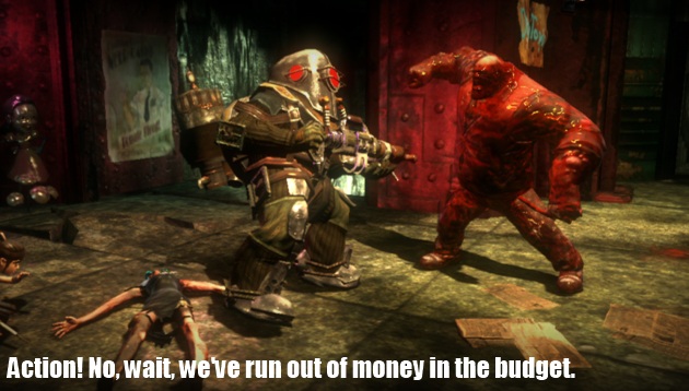 But—problem! How do you create a film on the cheap where the star is Rapture, the great underwater city? You’re either looking at terrible CGI or a series of cardboard cutouts with painted macaroni on there.