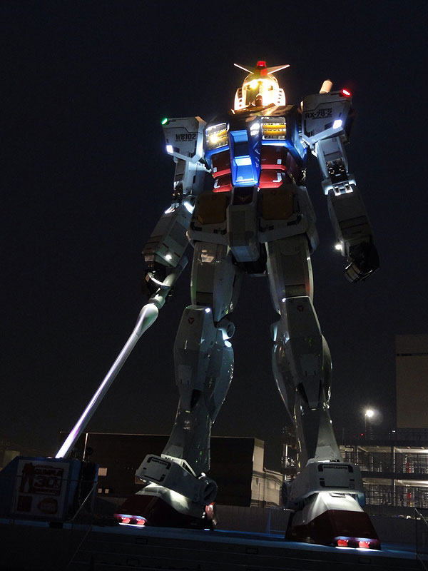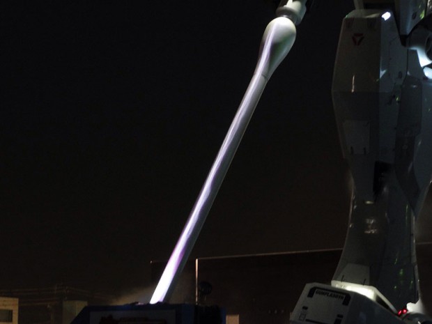 The most noticeable difference to the previous model is the new “beam saber” that Gundam is holding in his right hand and that starts glowing in the night (see below).