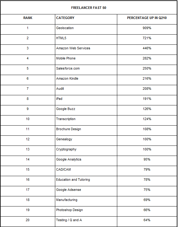 Freelancer.com spotted a whopping 909% increase in geolocation jobs online. As a result of what the company dubs the ‘Apple effect’, Freelancer.com also saw a significant 721% boost in HTML5 jobs.