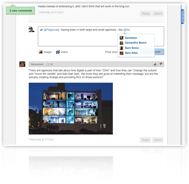Shortly, Livefyre will open its new beta for this commenting system. The first step, Livefyre Blogger, is aimed at individual bloggers using platforms like WordPress, Tumblr, and TypePad. The second step, Livefyre Publisher, meant for larger publishers, will be coming soon. But there’s also a white label version of Livefyre that the service hopes large services will take advantage of (for a fee, of course) to give them access to APIs and other options that free users don’t get.