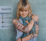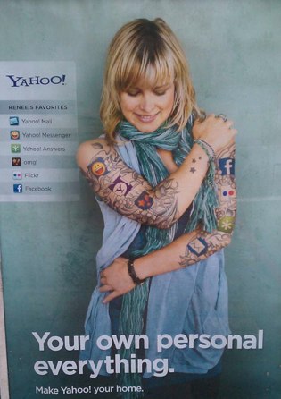 “Your own personal eveything,” reads the ads, which include a picture of a woman with tattoos of products and companies. And for some reason one of those tattoos is the Facebook icon. Ironic in in a way.