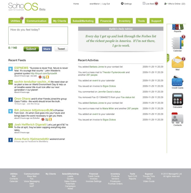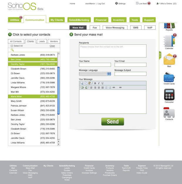 Soho OS also beefed up communications features with video chat, SMS, VOIP, voice messaging, as well as improved conference calling and broadcast emails.