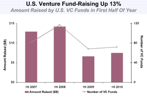 Including a U.S. private equity shops, which includes venture funds, 198 funds raised $45.1 billion during the first half, down 26% from the same period in 2009. Buyout funds raised saw the biggest drop in money raised, finding $21 billion across 74 funds, down 35% from $32.4 billion raised by 75 funds a year ago, as limited partners’ interest in mega funds — those targeting $6 billion and up — waned.
