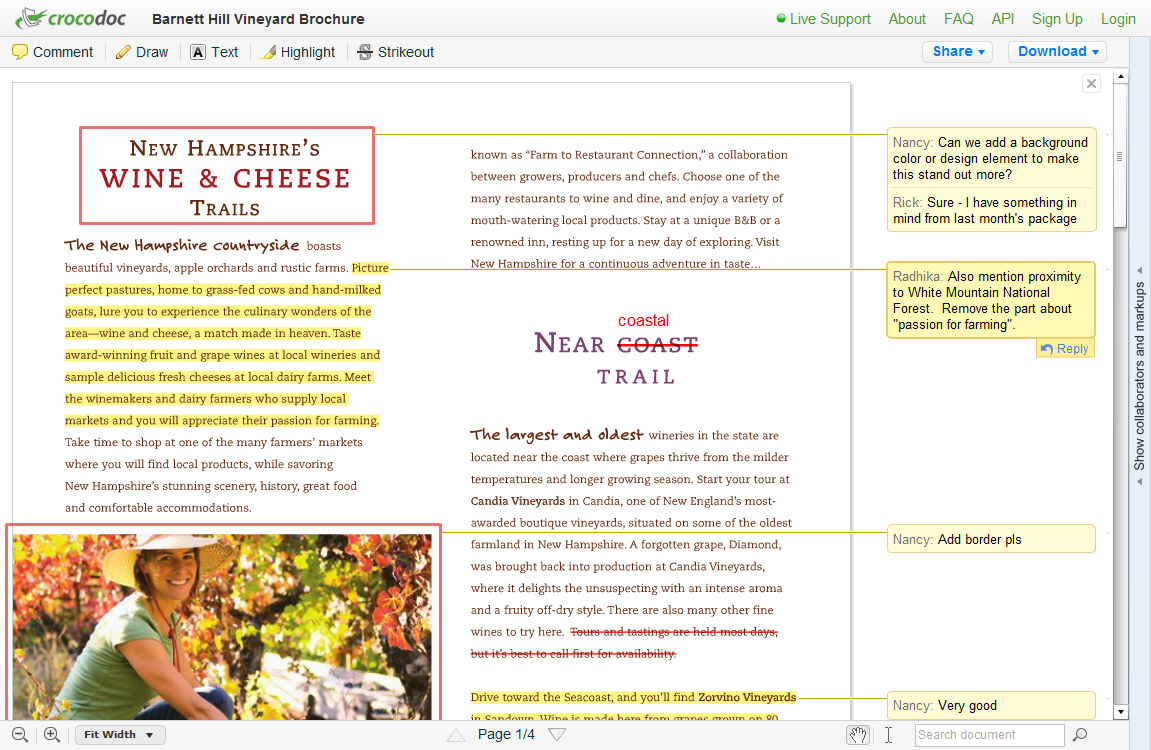 Damico says that the new version of Crocodoc includes plenty of other changes as well. The UI has been overhauled, as have most of the editing tools. Document exporting works better than it did before. And the site has also built out its API and embedding features. The site offers some premium features, like SSL encryption and password protected documents, but Damico says that Crocodoc is currently focused on making sure it is addressing the major pain points for users with its free product, with other plans to monetize down the road.