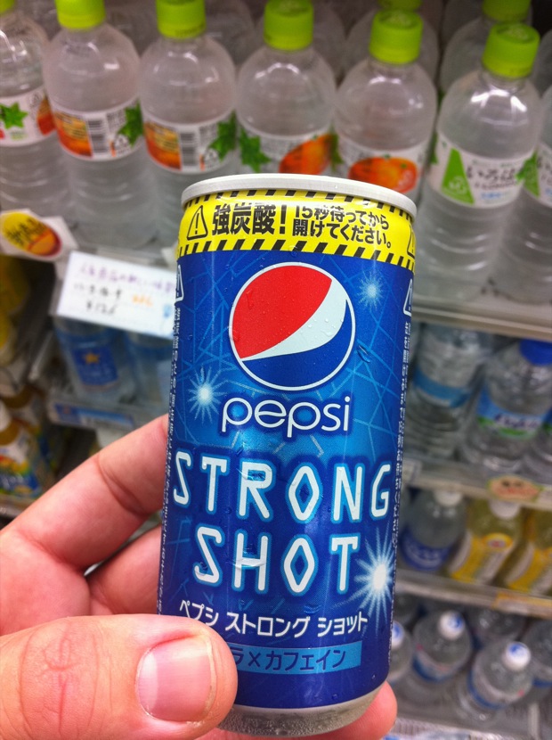 I’m in Japan right now and I just downed a can of Pepsi Strong shot, a power drink from Pepsi that has all the sugar and taste of Pepsi but more caffeine. My verdict? Pretty weird and pretty effective.