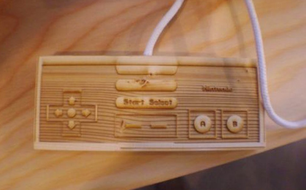 Really, though. It’s a kind of sculpture — “Craftsmanship is so precise it appears to be a functional Nintendo at first glance.” Yes, although the wood-finish NES didn’t really catch on, if I remember correctly. The detail really is nice, though: