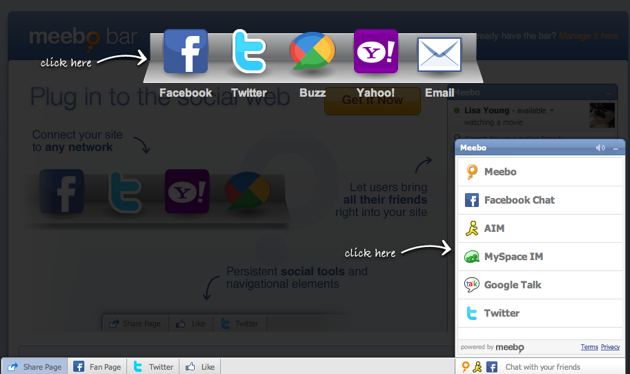 Sternberg says that Facebook and Meebo will definitely be jockeying for the same screen real-estate on third party sites, but he thinks that it can beat Facebook on openness. He explains that Meebo’s Bar has support for a broad number of networks like MSN, MySpace, Twitter, and email; Facebook may well only offer Facebook (and probably email) integration. He also points out that Meebo’s bar is more customizable, so publishers can integrate their own applications or Twitter streams.