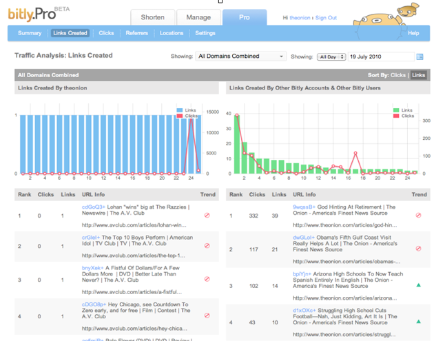 Popular link-shortening service Bit.ly is giving its enterprise customers a new analytics dashboard today, allowing large publishers to better track the distribution of their links on a per-story basis. The benefits of the new dashboard are obvious — publishers and companies with large presences on Twitter and Facebook can use the dashboard to see which of their articles and social media strategies are working best.