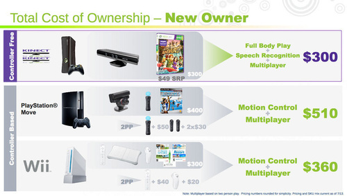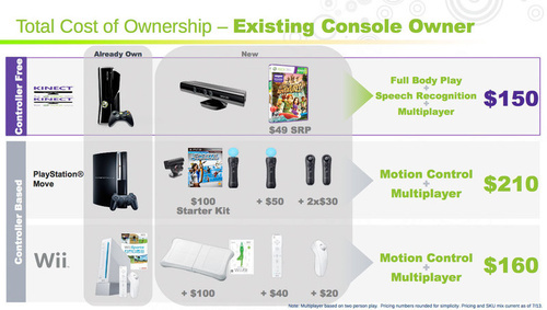 Microsoft has come up with its own internal version of a price comparison between motion control platforms. Of course, Microsoft shows their way being the cheapest route to motion control, but it really depends on how you’re playing the game.