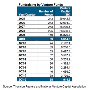 In the second quarter, venture capitalists invested $6.5 billion, an impressive 34% increase from the prior quarter. Not so impressive? The amount of money they pulled in. According to Thomson Reuters and the National Venture Capital Association, venture capital funds only raised $1.9 billion in the second quarter— a 48% drop from the prior quarter. While VC fundraising can be somewhat cyclical, $1.9 billion is far lower than any quarter during the recession.