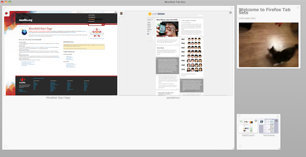 Be sure to watch the video below for a full overview — from the looks of it, it seems as if Tab Candy is sort of like Apple’s Expose feature mixed with their Spaces feature, both of which are baked into OS X. For those who don’t use a Mac, basically these features allow you to zoom out and get a bird’s-eye-view of all your windows (or tabs, in this case) that are open — and you can also arrange open windows (or again, tabs, in this case) in certain spaces so they’re clumped together. This allows you to more easily find what you’re looking for with so many tabs open.