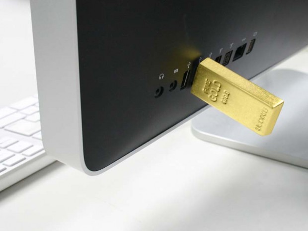 In case you ever wanted a “golden” USB memory stick, here’s your chance: made by I-O Data, the so-called Gold Ingot USB Memory [JP] offers 4GB capacity. The body is mainly made of Japanese wood and covered by a thin layer of gold.