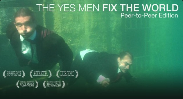 I’d describe The Yes Men as a less annoying Improv Everywhere. There’s also a larger, more important point to their antics. They released a movie a few months ago called “The Yes Men Fix the World,” but DVD distribution can take you but so far in 2010. Solution? Release the movie (courtesy of Vodo) 100 percent legally via BitTorrent. I’m downloading now~!