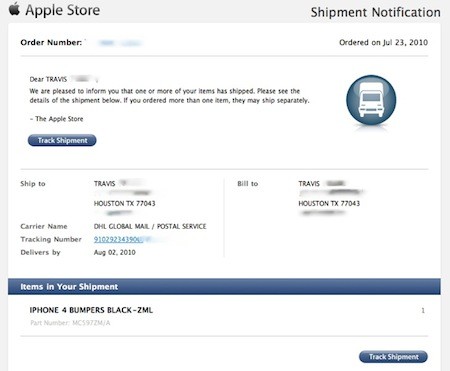 Good news iPhone 4 users; despite being being told that the free bumper (or case) wouldn’t be shipping for 3-5 weeks, word on the internet is that many people are starting to receive shipping notifications. So heads up if you’ve already ordered your free case or bumper, and a gentle reminder to go and do so if you haven’t already. Apparently this isn’t an isolated incident either, as TUAW reports that multiple iPhone 4 users have reported the same thing happening.