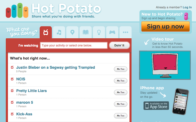 Earlier this year, Facebook is believed to have sniffed around both Loopt and Foursquare as potential acquisition targets. Hot Potato is often clumped in with those two as a location-based service. But, as I said, the latest revamp moved the service away from location check-ins (though location is still a central part), and more toward general check-ins — a space which is currently heating up quite a bit. (Still, I’ll chalk this up to up to the Great Location Land Rush of 2010, if it goes down.)