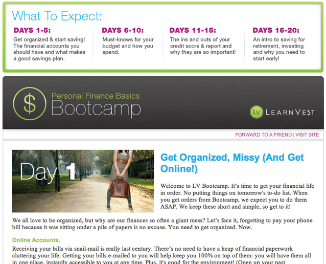 Today, the startup is launching three online programs, called ‘bootcamps,’ to educate women on various financial subjects, including a Financial Basics Bootcamp, Cut Your Costs Bootcamp, and Investing Bootcamp. Instead of creating a book-like online experience, LearnVest is making email newsletters the foundation of the educational sessions.