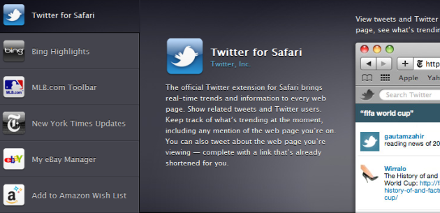 Perhaps surprisingly, two fierce Apple competitors were given the opportunity to tout their extensions first and foremost, namely Amazon.com with their Wish List extension and Microsoft with their Bing Extension for Safari. Also featured in the press release: MLB.com, The New York Times and Twitter (eBay also gets featured on the Gallery site).