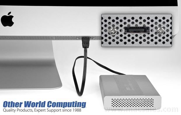 It’s a fact that Apple hates connectivity standards. Well, maybe not a fact, but a common thought and so OWC has came up with a relativity inexpensive option to fix Apple’s latest puzzling design flaw. For only $169, which doesn’t include shipping, the company will cut a small hole in the bottom grill and install the missing eSATA port. The only little issue is that said port isn’t port-multiplication-compatible so it won’t work properly with most multi-drive RAID enclosures. Still, creative types with large storage needs will no doubt love to use the fast and reliable connection rather than Firewire 800 or *shudder* USB 2.0 on their brand new iMac.