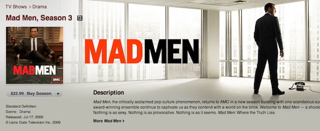But the problem is just as daunting for traditional computers too. Full seasons of television shows in HD on iTunes take up dozens of gigabytes. I have what I would consider to be a modest collection of shows (Mad Men seasons 1 – 4, Lost seasons 4-6, The Office seasons 4-6, Dexter seasons 1-3, and a few others here and there). I had to buy an external drive to handle just those. Considering how cheap external 1 and 2 terabyte drives are now, it’s not a huge deal for me — but most consumers aren’t going to want to do that. Especially going forward.