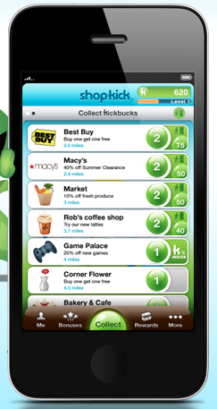 There’s also a new virtual currency shopkick has created called “kickbucks” — these can be redeemed for Facebook credits, songs from Napster, or immediate cash-back rewards at partner stores among other things. You can also use these kickbucks to donate to charity.
