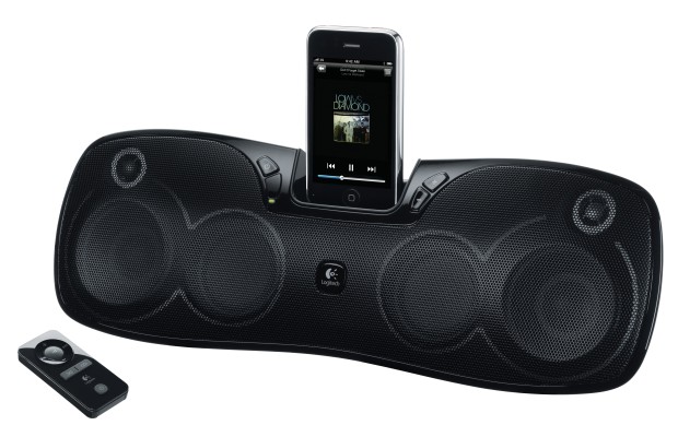 There isn’t too much to explain here. This is Logitech’s new iPod/iPhone dock and speakers — the main thing you need to know is that it has a rechargeable internal battery so you can take it to the beach and whatnot. It’ll go all day long — and all night strong. As long as that’s not more than eight hours. Comes with remote.