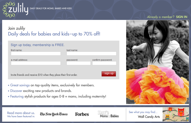 Zulily says moms can save an average of 50-70 percent off retail prices of boutique brands for babies, kids, and maternity using its service. You know the drill of the model by now: daily distribution of limited-time only deals with limited supply of goods.