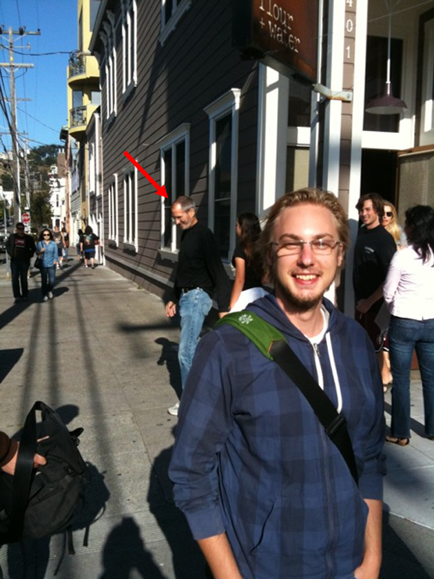 What’s particularly notable here is that Andrejweski, who may I remind you owns her own location-based photo posting site, regrettably posted the photo to Twitpic instead of Foodspotting and offered no background or explanation as to whether she was part of Jobs’ entourage or just an innocent photo bomb bystander (we’ve contacted her for more info and will update this post if she responds).