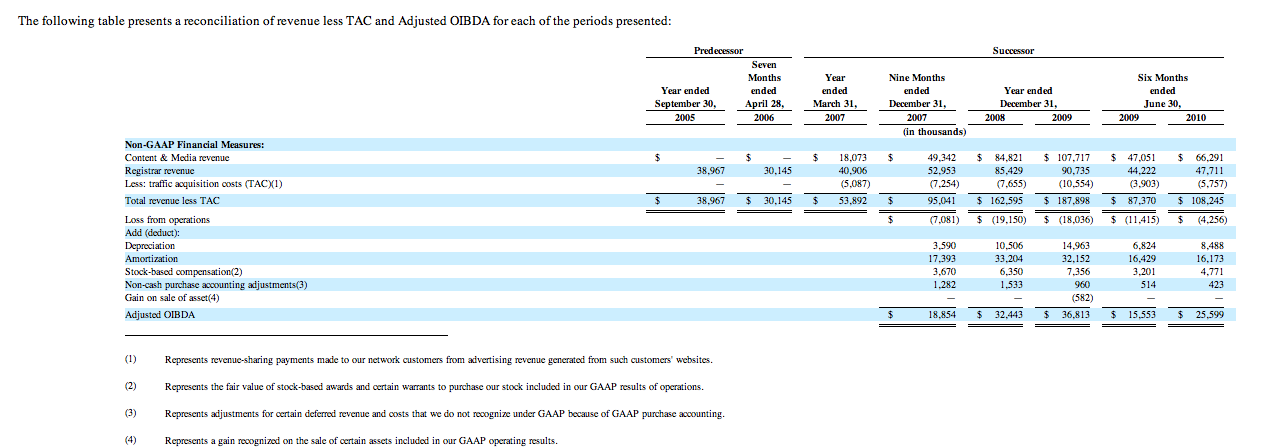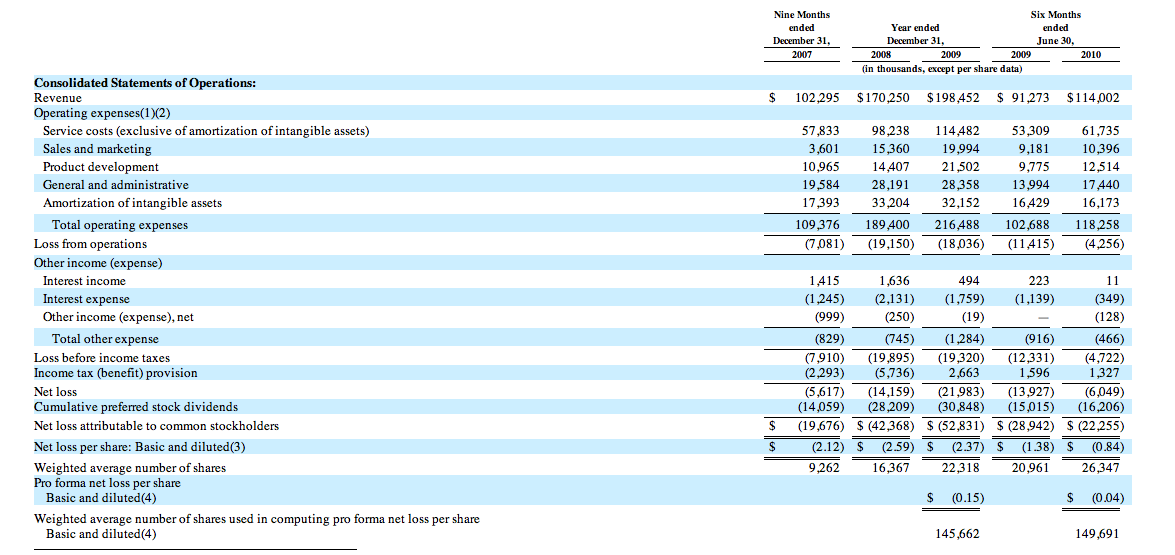 Some other juicy details from the prospectus (unless otherwise stated, stats are for the first half of 2010):