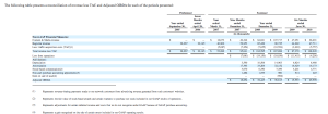 That is just from a quick scan. There is lots more in there. Above and below are a couple of tables showing consolidated financial data and a breakdown of revenues along business lines. Click to enlarge