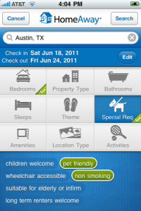 HomeAway, the Austin based provider of short-term rental property listings, services for vacation rentals by owner, and search and review tools for travelers debuted its first mobile app today.