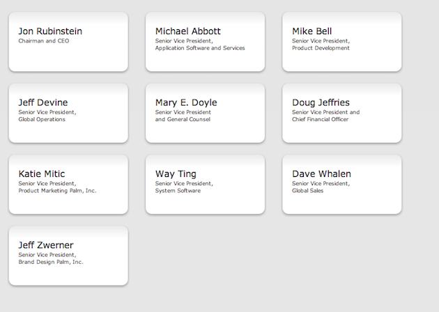 We first reported earlier today that Peter Skillman, the Vice President of Design at Palm had left the company. But while he was very important to the company (he was the designer of the Palm Pre) he wasn’t technically an executive. Following the completion of the HP deal, Palm has taken down their executive page. But here’s who was on the Management Team: