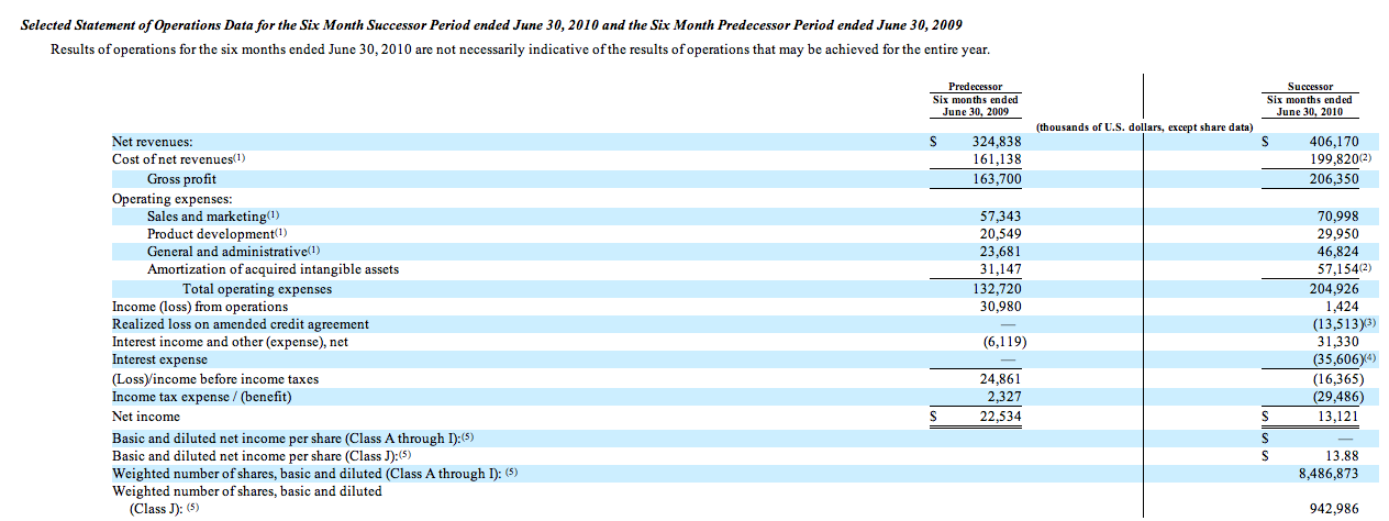 On the IPO road show, Skype will no doubt point to its adjusted EBITDA (earnings before income taxes and depreciation) numbers, which conveniently strip out things like goodwill, stock-based compensation and litigation expenses. Adjusted EBITDA for the first half of 2010 was $115.7 million, up 54 percent from a year ago. The company currently has $85 million in cash. These numbers reflect pro forma adjustments to Skype’s historical financial statements. (Click on the financial results table below to enlarge):