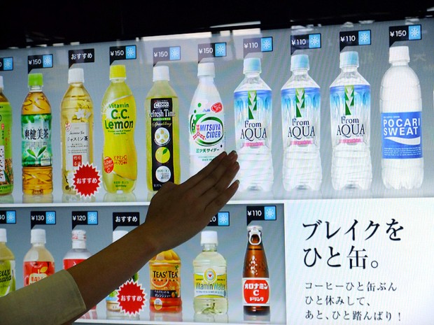 The new system is larger than the Yahoo Japan model and can detect one’s sex and age, too. All that customers need to do is to stand in front of the system, wait for it to work its magic through a camera, and then choose the drink that the system recommends by pushing the drink’s icon on a 47-inch touch panel.