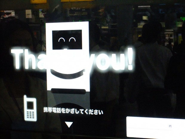 If there’s no one around, the machine displays information like the current time or temperature, but it also can show ads or videos it downloads via Wimax. The first machine was put up at Shinagawa station in central Tokyo today, with 500 more systems to follow in the next two years.