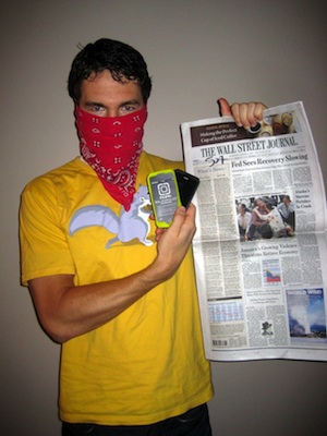 Linville has sent Apple’s Rebate Center a humorous email response (below) to the rejection letter he received. Attached to it, he included two photos. One features his iPhone 4, his iPhone 4 case, and a copy of the Wall Street Journal as proof of the date. The other shows Linville himself dressed as a terrorist (or bandit, hard to tell) holding up all of the said items. Yes, it’s a proof of life.
