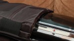 The bag’s best feature is the large pocket for the game system. The whole bag opens up, reveal this large, fleece-lined pocket. The entire thing is made out of thick padding and there’s a large strap on top to keep it closed tightly. It holds an Xbox 360 or full-size PS3 perfectly fine and might be more securer in there than the retail packaging.