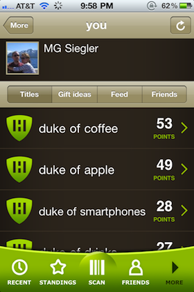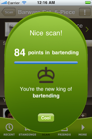 What’s nice about the app is that it’s simple. From the moment you launch it, it’s very clear what you’re supposed to do: find a barcode and scan it. It’s also a bit addicting to see yourself gaining points and moving past other users in certain product categories as you battle for the aforementioned dukedoms and kingships. And doing other actions such as recommending a product or writing a short review will get you even more points.