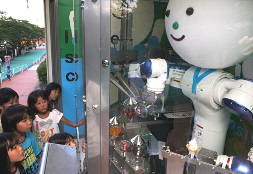 Meet Yaskawa-kun. Yaskawa-kun is Japan’s newest robot, and he has two special skills: he looks cute and he can make and sell ice cream. Currently, he is working at Tokyo Summerland, a big theme park, where he will replace human workers until August 22.