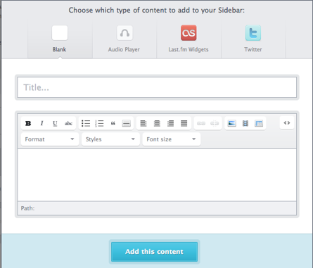 Still, I think it has a ways to go before it can really become a ‘Tumblr for entire websites’. After first entering the Virb content/page editor, it took me a few minutes to get my bearings, and the site didn’t do much hand-holding to introduce me to each feature. Granted, I figured it out in less than five minutes, but I suspect the market Virb is targeting — namely, people who want something very straightforward that ‘just works’ — may be a little more confused. That said, this could easily be remedied by a better introduction process and some UI tweaking.