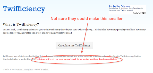 Dear Internet, please stop clicking on the damn Twifficiency link. In case you’re unaware by now given the 4,000 tweets in your tweet stream, it’s not the coolest app ever, it just automatically tweets out your results.