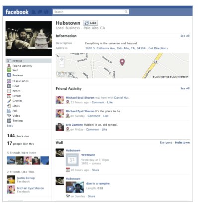 With these sorts of incentives and a potentially hot new feature that’s will be put in front of hundreds of millions of Facebook members, what advertiser and business wouldn’t want to create a Places page? Many businesses have already been flocking to Facebook as both and advertising and marketing platform, and now they can have their address, map, phone number, PLUS all the public social activity that is going on at a location. A merged Places page will include a considerable amount of information, including the number of check-ins, who checked-in to a place, number of Likes, the Places’ Wall, and more.